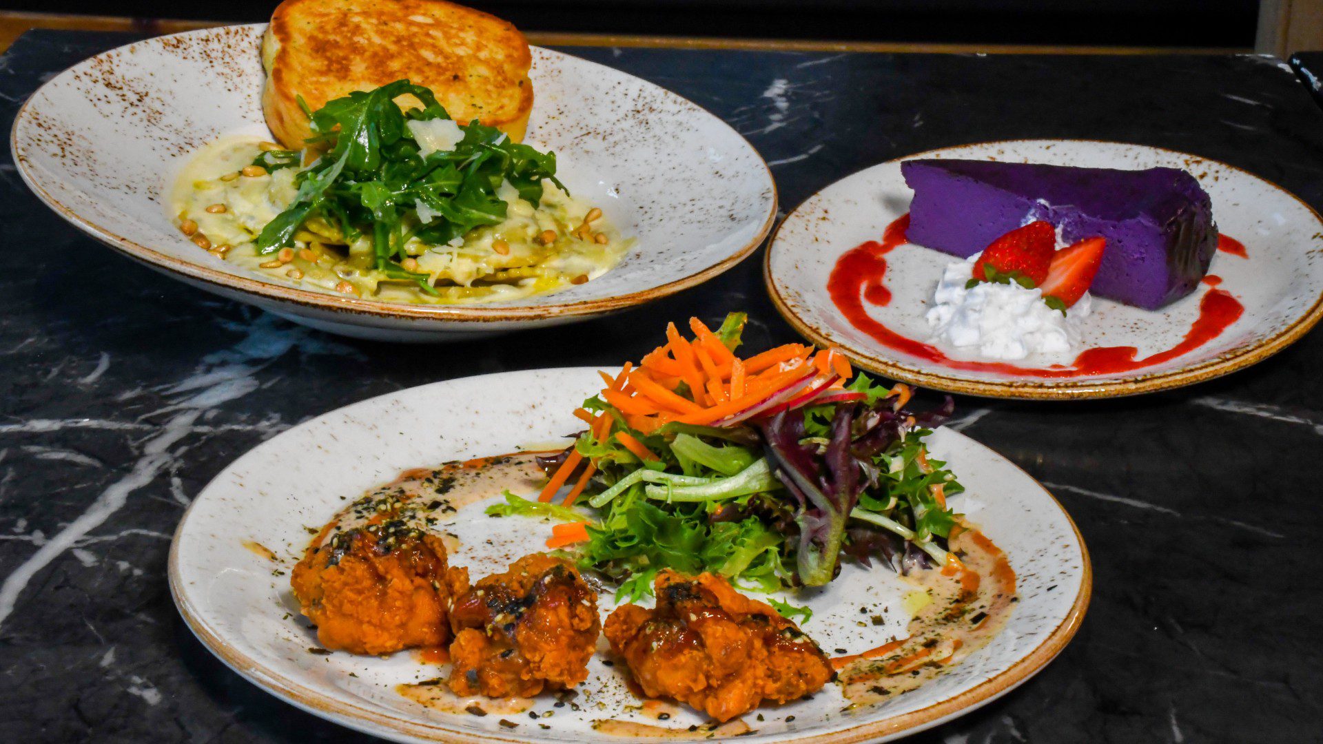 Pan-seared steelhead, 4oz Atlantic lobster tail, market vegetables, gnocchi, lobster cream sauce - Portobello & Crimini Mushroom Ravioli